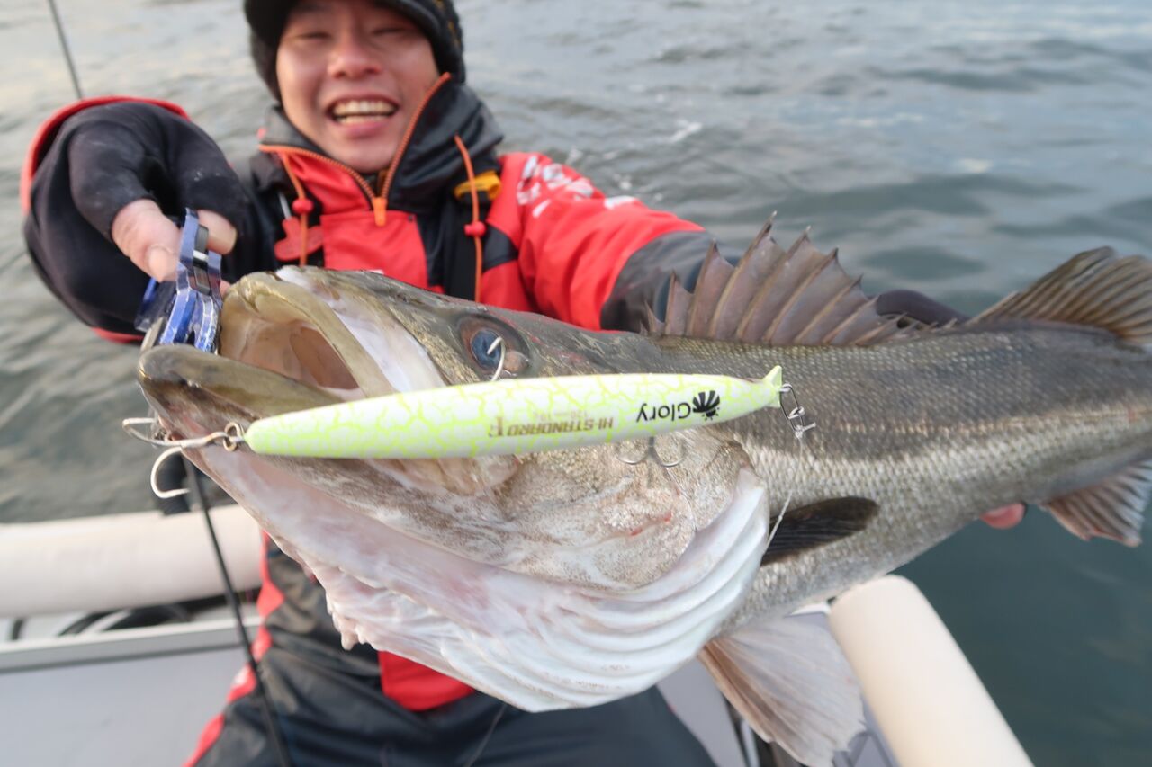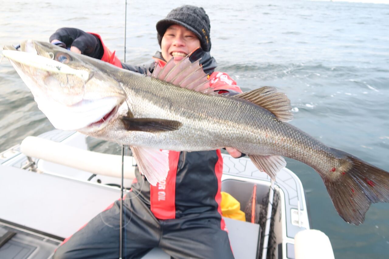この直後に確定ランカーがヒットしましたが、船縁で大きなウネリが来た瞬間フックアウト😢!!